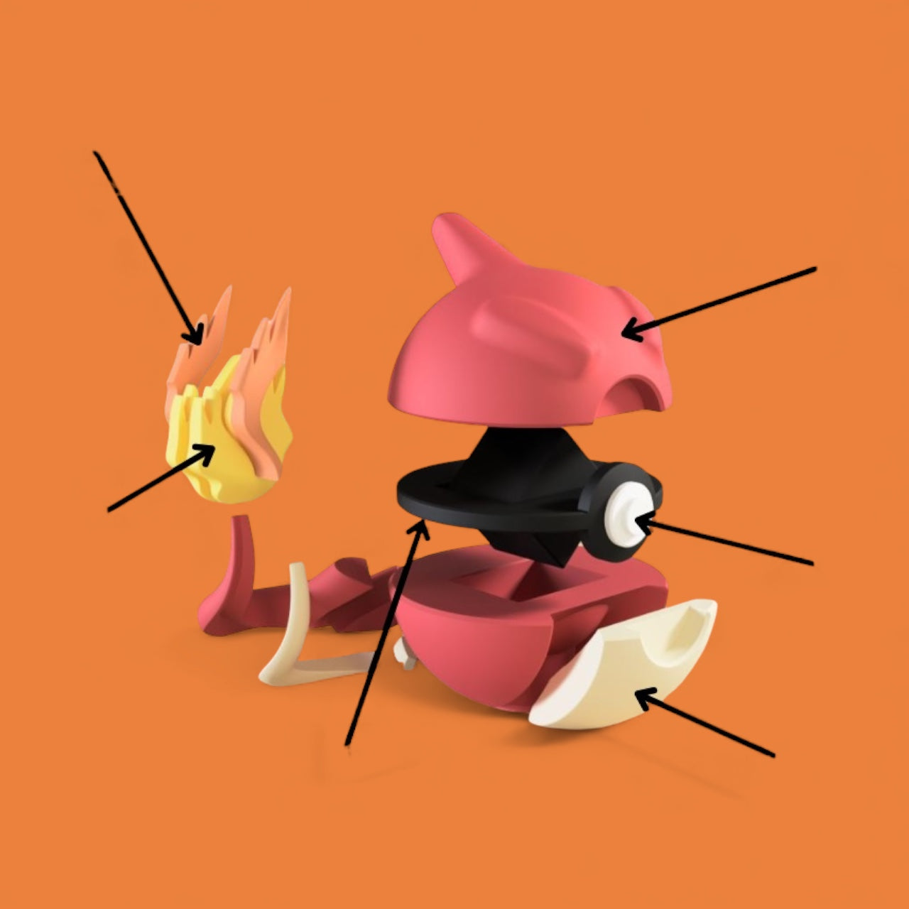 Charmeleon-Themed 3D-Printed Display Pokéball (#005)